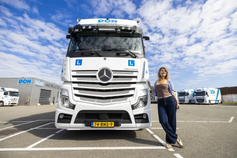 Of we meteen bij zo'n proefles de weg opgaan? Instructeur Rewien Thakoerdajal kijkt me aan alsof ik niet helemaal weet waar ik ben, namelijk bij de Naaldwijkse rijschool DON Opleidingen. ,,Natuurlijk gaan we rijden. Sterker nog: jij gaat rijden.” Ingrijpen schijnt amper te kunnen. Daarvoor is de afstand tussen de passagiers- en bijrijdersstoel in de cabine namelijk te groot.